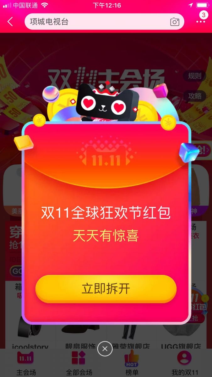 这些电视台都设置了各自的密令,通过自身的宣传渠道,让用户去手机淘宝搜索密令抢红包,这些红包可以在双11当天作为现金红包使用,还有一些天猫超市和店铺的优惠券,作为福利回馈给用户。